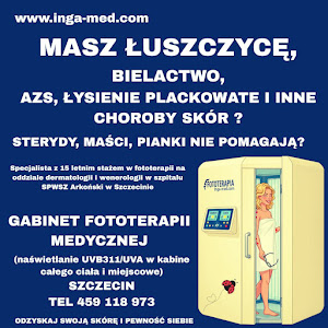 Fototerapia Szczecin i światłolecznictwo , gabinet Lamp Medycznych fizjo Fotodermatologia. Centrum leczenia łuszczycu promieniami UVB311. Nowoczesny sprzęt, nowe lampy, odpowiedni dobór dawki bazujący na 15 stu lat doświadczenia w fototerapii szpitalnej na oddziale dermatologii i wenerologii w Szczecinie. Kabina Waldmann ( 20 nowych promienników Uvb311 i 20 UVA) Leczenie łuszczycy, AZS, łysienie plackowate, egzemy, wyprysku, bielactwa i innych chorób skóry za pomocą promieni UVB 311nm i UVA. Naświetlania także komercyjne ( bezsenność, sezonowa depresja , gojenie ran, przemęczenie, brak witaminy D) Bardzo wysoka skuteczność. Wynajem sprzętu GH8 cosm!! www..inga-med.com Bezpłatna konsultacje oraz rezerwacja VIA email [email protected]